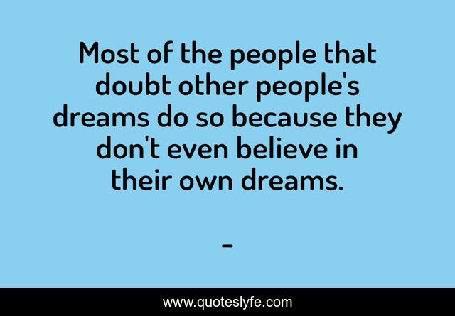 Most of the people that doubt other people's dreams do so because they don't even believe in their own dreams.