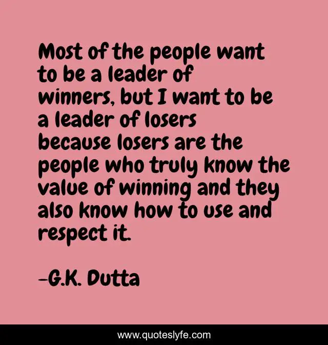 This page presents the quote "Most of the people want to be a leader of winners, but I want to be a leader of losers because losers are the people who truly know the value of winning and they also know how to use and respect it.". Author of this quote is G.K. Dutta. This quote is about inspriational, leadership,.