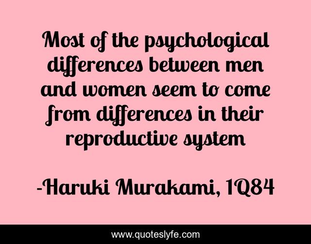 This page presents the quote "Most of the psychological differences between men and women seem to come from differences in their reproductive system". Author of this quote is Haruki Murakami, 1Q84. This quote is about gender, psychology, reproduction,.