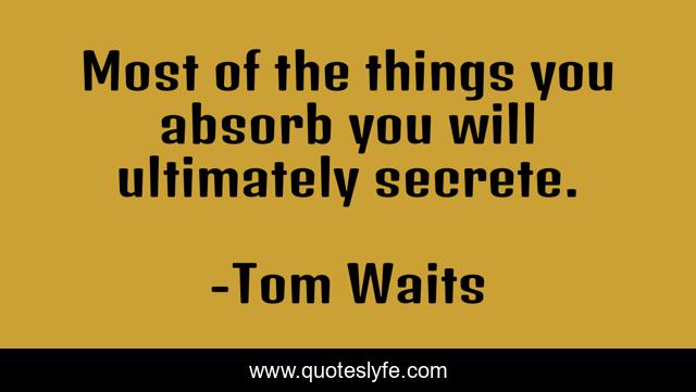 This page presents the quote "Most of the things you absorb you will ultimately secrete.". Author of this quote is Tom Waits. .