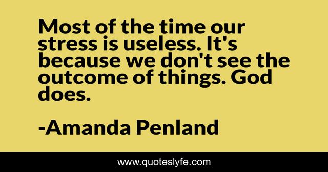 This page presents the quote "Most of the time our stress is useless. It's because we don't see the outcome of things. God does.". Author of this quote is Amanda Penland. This quote is about enthusiasm, stress, inspirational,.