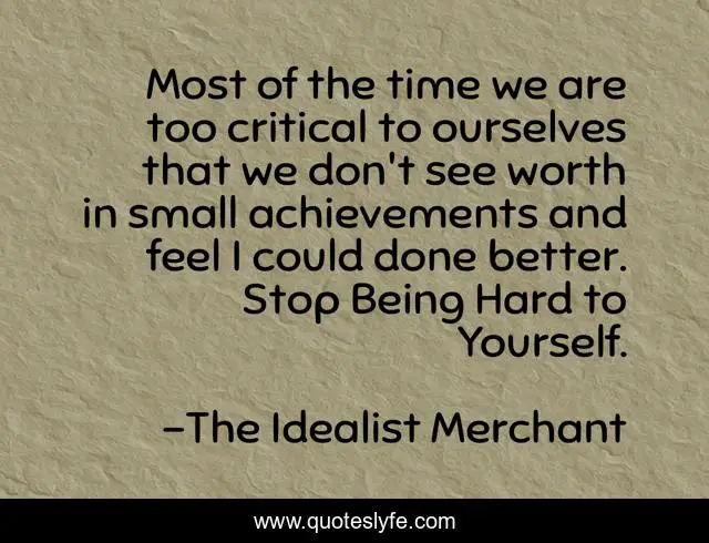 Most of the time we are too critical to ourselves that we don't see worth in small achievements and feel I could done better. Stop Being Hard to Yourself.