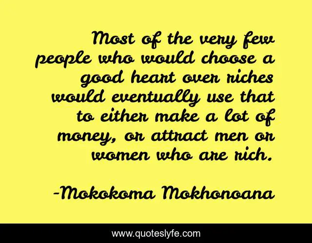 Most of the very few people who would choose a good heart over riches would eventually use that to either make a lot of money, or attract men or women who are rich.