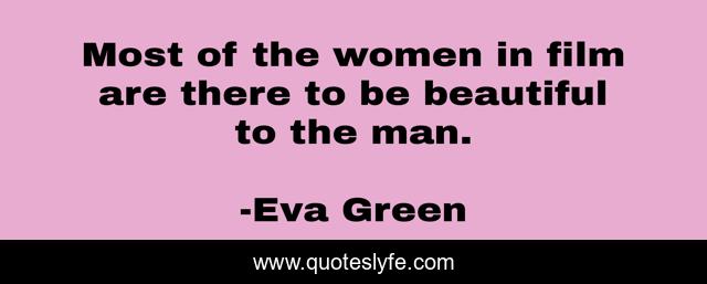 This page presents the quote "Most of the women in film are there to be beautiful to the man.". Author of this quote is Eva Green. This quote is about beautiful, film, man,.