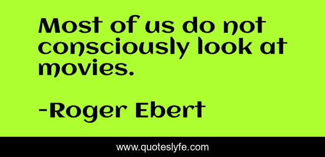 This page presents the quote "Most of us do not consciously look at movies.". Author of this quote is Roger Ebert. This quote is about most, look, us,.