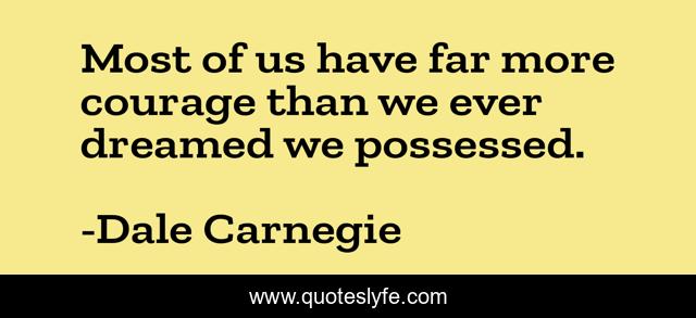 This page presents the quote "Most of us have far more courage than we ever dreamed we possessed.". Author of this quote is Dale Carnegie. This quote is about far, courage, us,.
