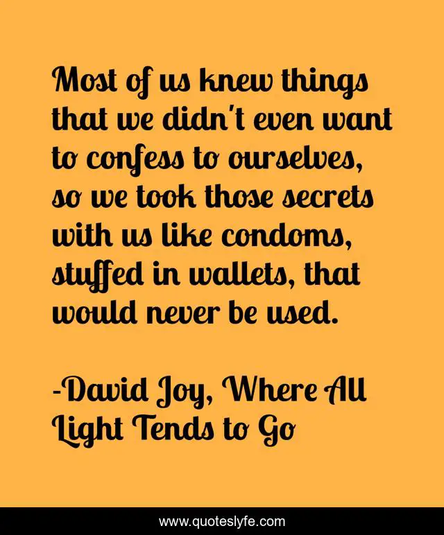 Most of us knew things that we didn't even want to confess to ourselves, so we took those secrets with us like condoms, stuffed in wallets, that would never be used.