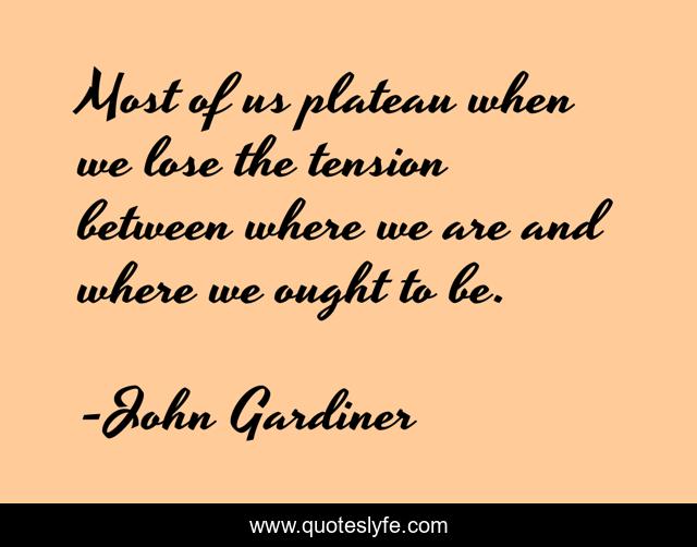 This page presents the quote "Most of us plateau when we lose the tension between where we are and where we ought to be.". Author of this quote is John Gardiner. This quote is about spiritual-growth, achievement,.