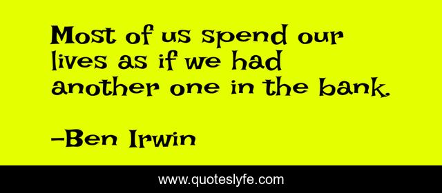 This page presents the quote "Most of us spend our lives as if we had another one in the bank.". Author of this quote is Ben Irwin. This quote is about day, one,.