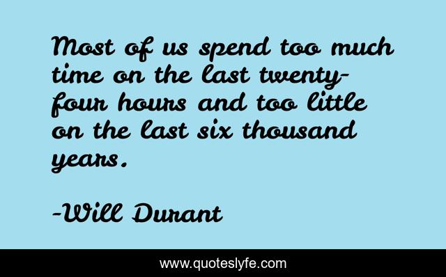 This page presents the quote "Most of us spend too much time on the last twenty-four hours and too little on the last six thousand years.". Author of this quote is Will Durant. This quote is about historians, history,.