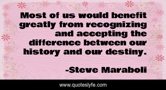 This page presents the quote "Most of us would benefit greatly from recognizing and accepting the difference between our history and our destiny.". Author of this quote is Steve Maraboli. This quote is about happiness, life, destiny, success, history,.