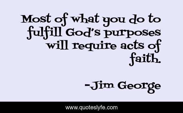 This page presents the quote "Most of what you do to fulfill God’s purposes will require acts of faith.". Author of this quote is Jim George. This quote is about faith, christian, god, men, nehemiah, purpose, act, fulfill,.