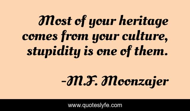 This page presents the quote "Most of your heritage comes from your culture, stupidity is one of them.". Author of this quote is M.F. Moonzajer. This quote is about stupidity, heritage,.