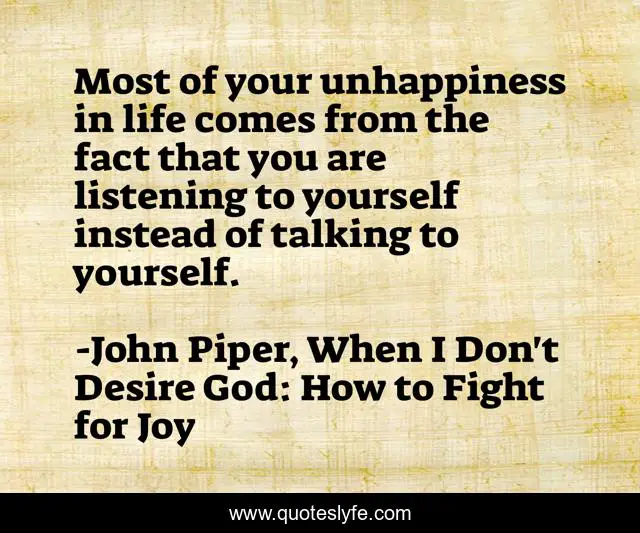 "John Piper, When I Don't Desire God: How to Fight for Joy Quotes." Quoteslyfe.com, 2025. Sat. 06 Dec. 2025. <https://www.quoteslyfe.com/quote/Most-of-your-unhappiness-in-life-comes-113982>.