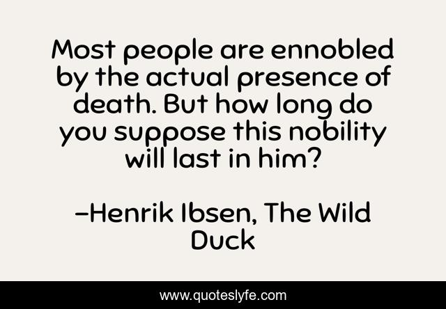 This page presents the quote "Most people are ennobled by the actual presence of death. But how long do you suppose this nobility will last in him?". Author of this quote is Henrik Ibsen, The Wild Duck. This quote is about grief, death, mourning,.