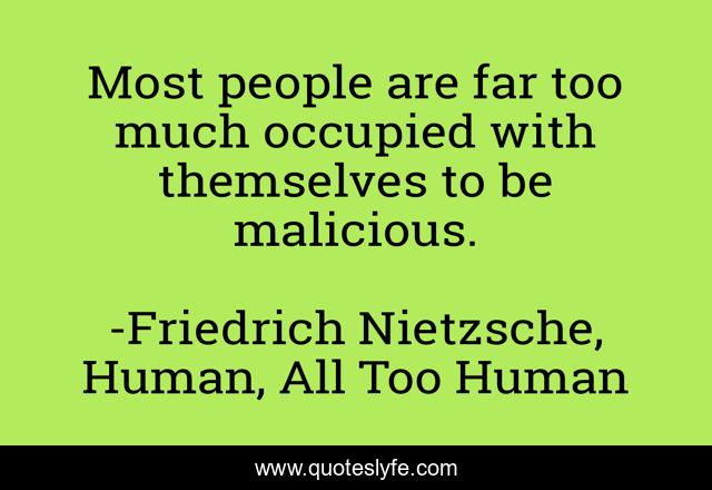 This page presents the quote "Most people are far too much occupied with themselves to be malicious.". Author of this quote is Friedrich Nietzsche, Human, All Too Human. This quote is about selfishness, human-nature, malice, people,.