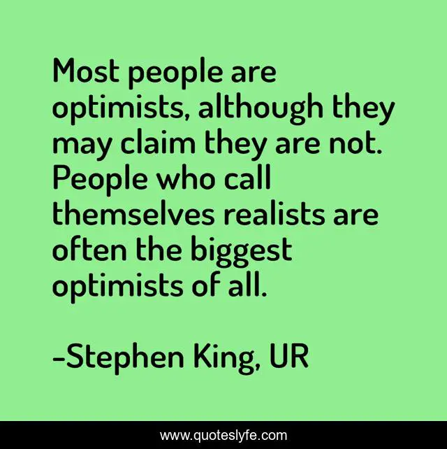 "Stephen King, UR Quotes." Quoteslyfe.com, 2025. Mon. 08 Dec. 2025. <https://www.quoteslyfe.com/quote/Most-people-are-optimists-although-they-may-181071>.