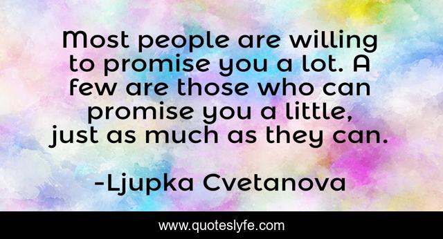 "Ljupka Cvetanova Quotes." Quoteslyfe.com, 2025. Fri. 05 Dec. 2025. <https://www.quoteslyfe.com/quote/Most-people-are-willing-to-promise-you-51025>.