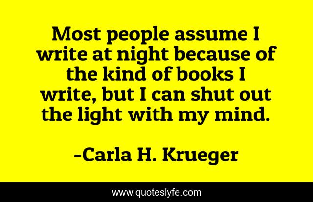 "Carla H. Krueger Quotes." Quoteslyfe.com, 2025. Sat. 06 Dec. 2025. <https://www.quoteslyfe.com/quote/Most-people-assume-I-write-at-night-150214>.