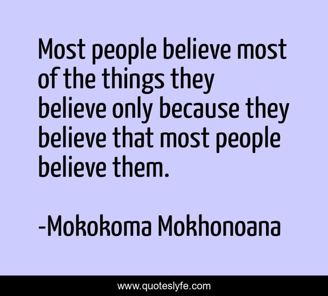 "Mokokoma Mokhonoana Quotes." Quoteslyfe.com, 2025. Mon. 08 Dec. 2025. <https://www.quoteslyfe.com/quote/Most-people-believe-most-of-the-things-56452>.