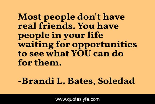 "Brandi L. Bates, Soledad Quotes." Quoteslyfe.com, 2025. Tue. 09 Dec. 2025. <https://www.quoteslyfe.com/quote/Most-people-don-t-have-real-friends-127117>.