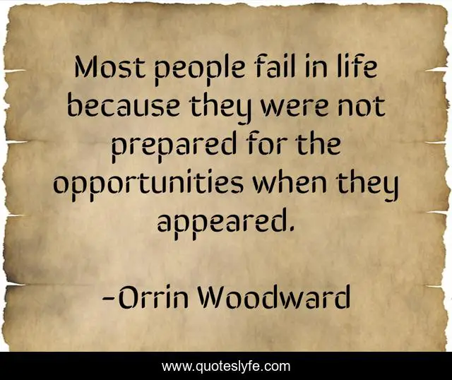 This page presents the quote "Most people fail in life because they were not prepared for the opportunities when they appeared.". Author of this quote is Orrin Woodward. This quote is about preparation, failure, winners, achievement, opporunity,.