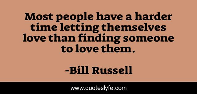 This page presents the quote "Most people have a harder time letting themselves love than finding someone to love them.". Author of this quote is Bill Russell. This quote is about finding, love, affection, people,.
