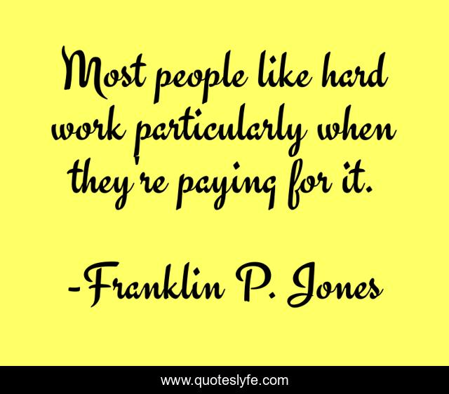 This page presents the quote "Most people like hard work particularly when they're paying for it.". Author of this quote is Franklin P. Jones. .