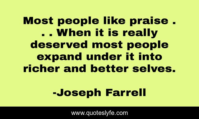 This page presents the quote "Most people like praise . . . When it is really deserved most people expand under it into richer and better selves.". Author of this quote is Joseph Farrell. .