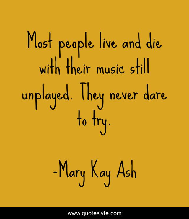 This page presents the quote "Most people live and die with their music still unplayed. They never dare to try.". Author of this quote is Mary Kay Ash. This quote is about failures, mistakes,.