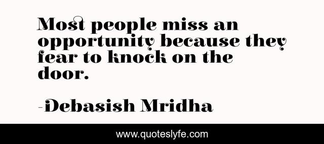 This page presents the quote "Most people miss an opportunity because they fear to knock on the door.". Author of this quote is Debasish Mridha. This quote is about philosophy, debasish-mridha, quotes, debasish-mridha-md, inspirational, enthusiasm, fear-of-opportunity, opportunity, door-of-opportunity,.