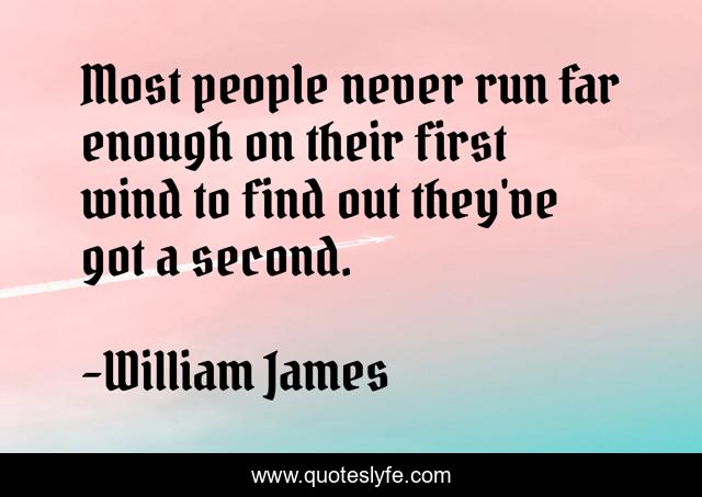 This page presents the quote "Most people never run far enough on their first wind to find out they've got a second.". Author of this quote is William James. This quote is about run, wind, people,.