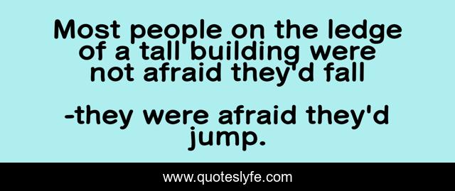 This page presents the quote "Most people on the ledge of a tall building were not afraid they'd fall". Author of this quote is they were afraid they'd jump.. .