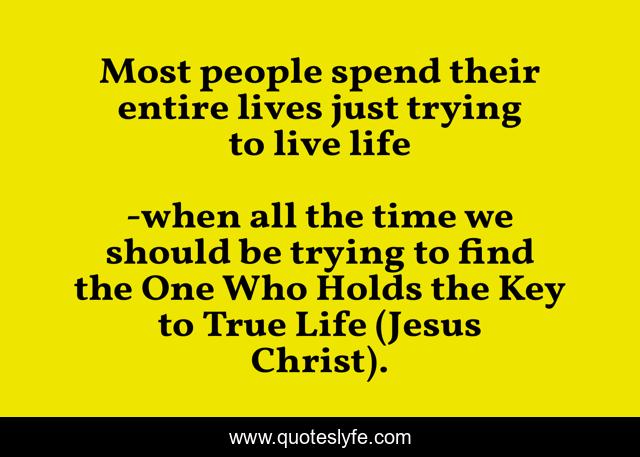 This page presents the quote "Most people spend their entire lives just trying to live life". Author of this quote is when all the time we should be trying to find the One Who Holds the Key to True Life (Jesus Christ).. .
