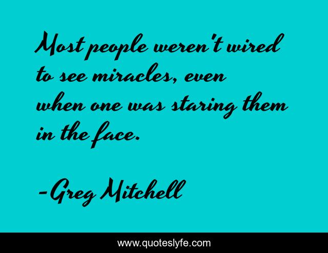 This page presents the quote "Most people weren't wired to see miracles, even when one was staring them in the face.". Author of this quote is Greg Mitchell. This quote is about miracles, human-nture,.