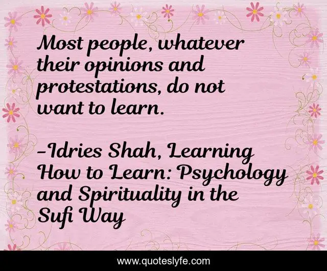This page presents the quote "Most people, whatever their opinions and protestations, do not want to learn.". Author of this quote is Idries Shah, Learning How to Learn: Psychology and Spirituality in the Sufi Way. This quote is about psychology, studying, wisdom, sufism, learning, sufis,.