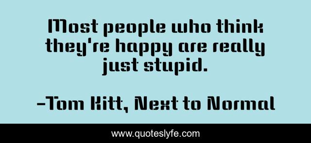 This page presents the quote "Most people who think they're happy are really just stupid.". Author of this quote is Tom Kitt, Next to Normal. This quote is about enthusiasm, depression, inspirational, happy,.