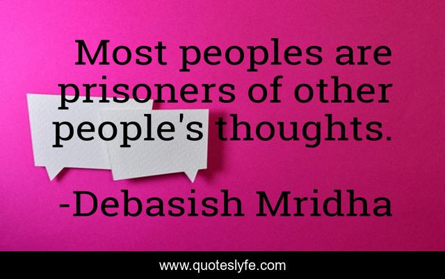 This page presents the quote "Most peoples are prisoners of other people's thoughts.". Author of this quote is Debasish Mridha. This quote is about life, love, knowledge, inspirational, intelligence, prisoners, philosophy, affection, wisdom,.