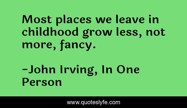 "John Irving, In One Person Quotes." Quoteslyfe.com, 2025. Sun. 07 Dec. 2025. <https://www.quoteslyfe.com/quote/Most-places-we-leave-in-childhood-grow-104014>.