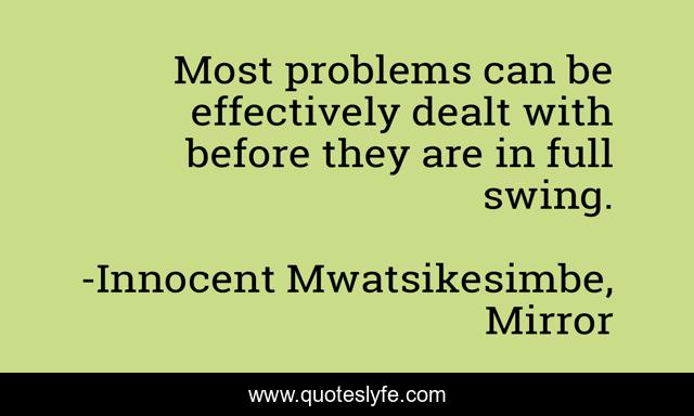 This page presents the quote "Most problems can be effectively dealt with before they are in full swing.". Author of this quote is Innocent Mwatsikesimbe, Mirror. This quote is about problem-solving, problems, proactive, time,.