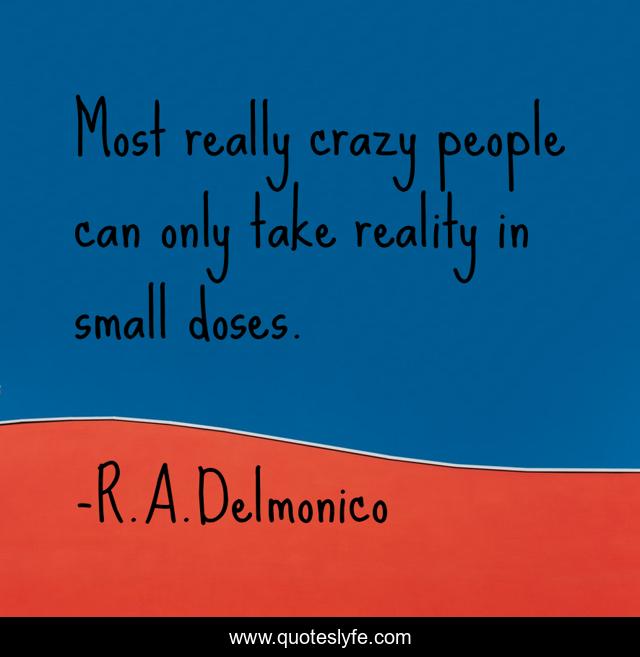 This page presents the quote "Most really crazy people can only take reality in small doses.". Author of this quote is R.A.Delmonico. .