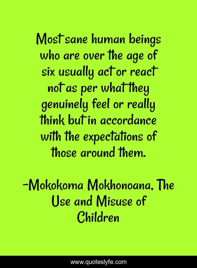 "Mokokoma Mokhonoana, The Use and Misuse of Children Quotes." Quoteslyfe.com, 2025. Mon. 08 Dec. 2025. <https://www.quoteslyfe.com/quote/Most-sane-human-beings-who-are-over-22325>.