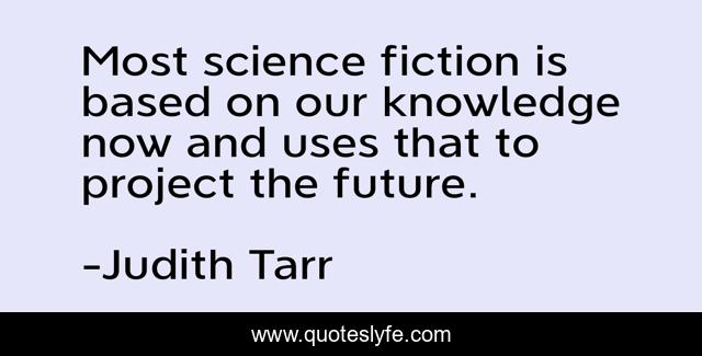 This page presents the quote "Most science fiction is based on our knowledge now and uses that to project the future.". Author of this quote is Judith Tarr. This quote is about project, future, knowledge,.