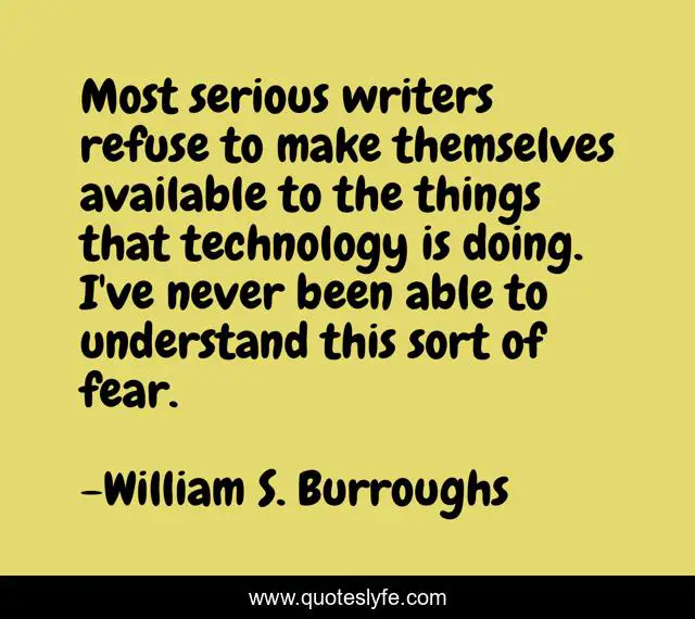 This page presents the quote "Most serious writers refuse to make themselves available to the things that technology is doing. I've never been able to understand this sort of fear.". Author of this quote is William S. Burroughs. .