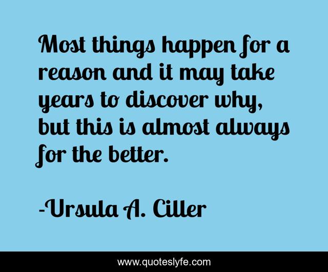 "Ursula A. Ciller Quotes." Quoteslyfe.com, 2025. Fri. 05 Dec. 2025. <https://www.quoteslyfe.com/quote/Most-things-happen-for-a-reason-and-125720>.
