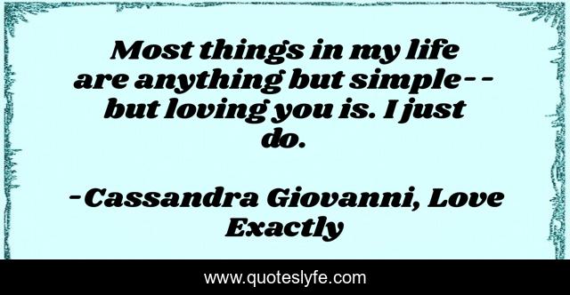This page presents the quote "Most things in my life are anything but simple--but loving you is. I just do.". Author of this quote is Cassandra Giovanni, Love Exactly. This quote is about romance, love-story, romancecrossed-lovers,.