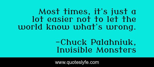 This page presents the quote "Most times, it's just a lot easier not to let the world know what's wrong.". Author of this quote is Chuck Palahniuk, Invisible Monsters. .