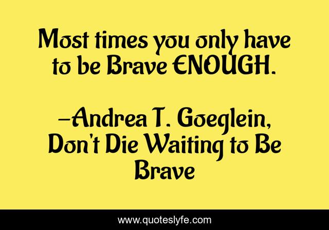 "Andrea T. Goeglein, Don't Die Waiting to Be Brave Quotes." Quoteslyfe.com, 2025. Sat. 06 Dec. 2025. <https://www.quoteslyfe.com/quote/Most-times-you-only-have-to-be-254229>.