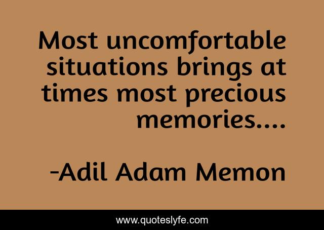 This page presents the quote "Most uncomfortable situations brings at times most precious memories....". Author of this quote is Adil Adam Memon. .