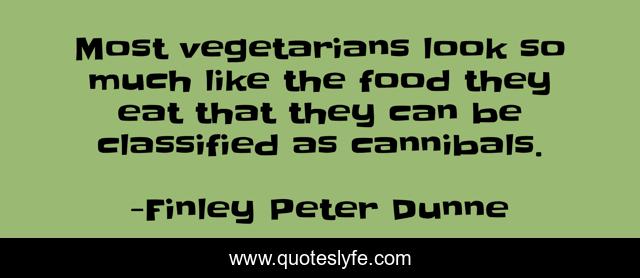 This page presents the quote "Most vegetarians look so much like the food they eat that they can be classified as cannibals.". Author of this quote is Finley Peter Dunne. This quote is about like, eat, look,.